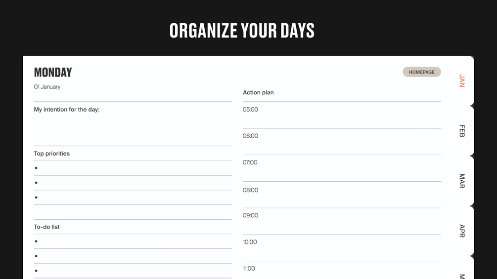 Your success starts here and now. Our planner is more than just a tool - it's your daily partner, designed to guide you towards achieving your goals.